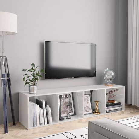 Bibliotheque/Meuble TV Blanc brillant 143x30x36 cm