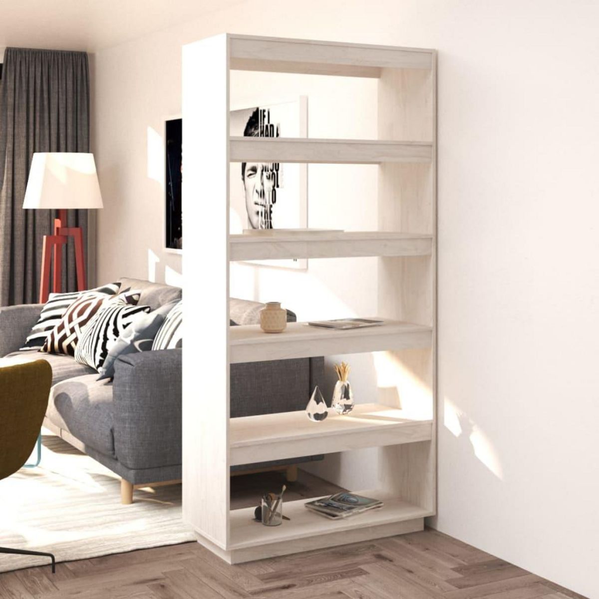 Bibliotheque/Separateur de piece Blanc 80x35x167 cm Pin massif