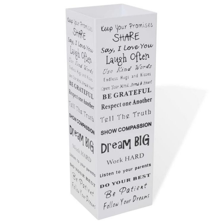 Le Blanc Carré Porte-parapluie Stockage pour cannes bâtons Acier 48,5 cm de la marque VIDAXL est un élément décoratif et pratique pour stocker vos parapluies, cannes et bâtons de trekking. Fabriqué en acier enduit de poudre, ce porte-parapluie est robuste et résistant. Sa couleur blanche lui confère un aspect moderne et élégant, parfait pour s'intégrer dans n'importe quel intérieur.