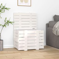 Boîte de rangement Blanc 58x40,5x42 cm Bois massif de pin