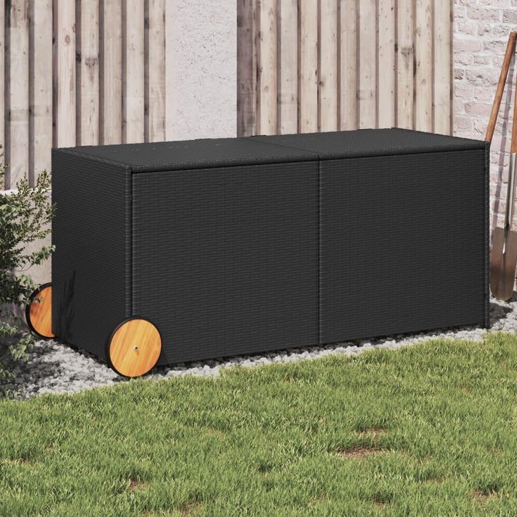 Boîte de rangement de jardin et roues noir 283L resine tressee