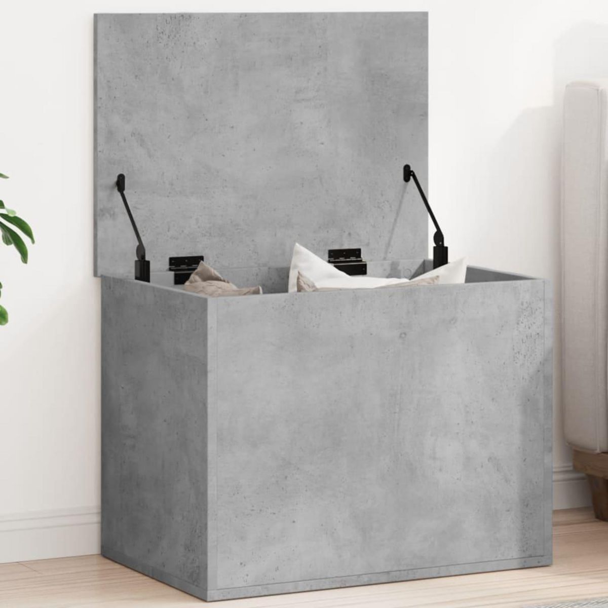 Boîte de rangement gris beton 60x42x46 cm bois d'ingenierie