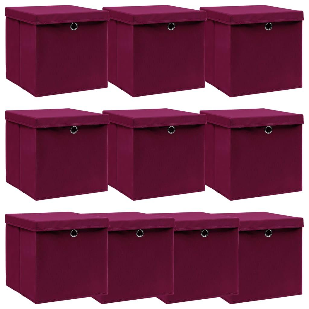 Boîtes de rangement 10 pcs Rouge fonce 32x32x32 cm Tissu