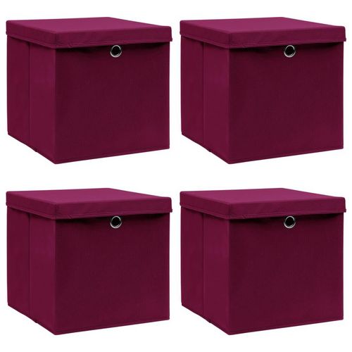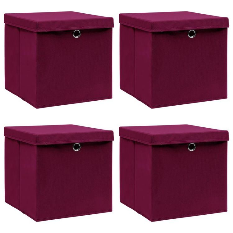 Boîtes de rangement 4 pcs Rouge fonce 32x32x32 cm Tissu