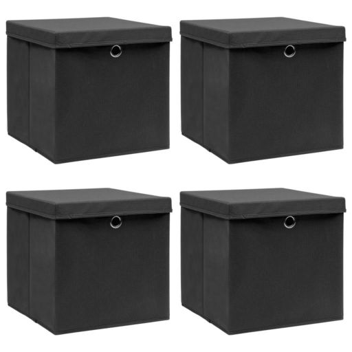 Boîtes de rangement avec couvercle 4 pcs Noir 32x32x32 cm Tissu