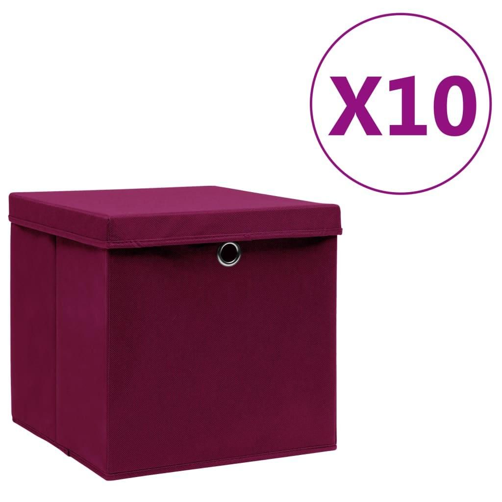 Boîtes de rangement et couvercles 10 pcs 28x28x28cm Rouge fonce
