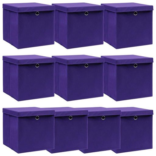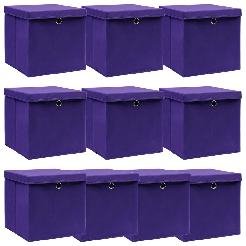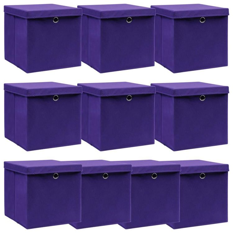 Boîtes de rangement et couvercles 10pcs Violet 32x32x32cm Tissu