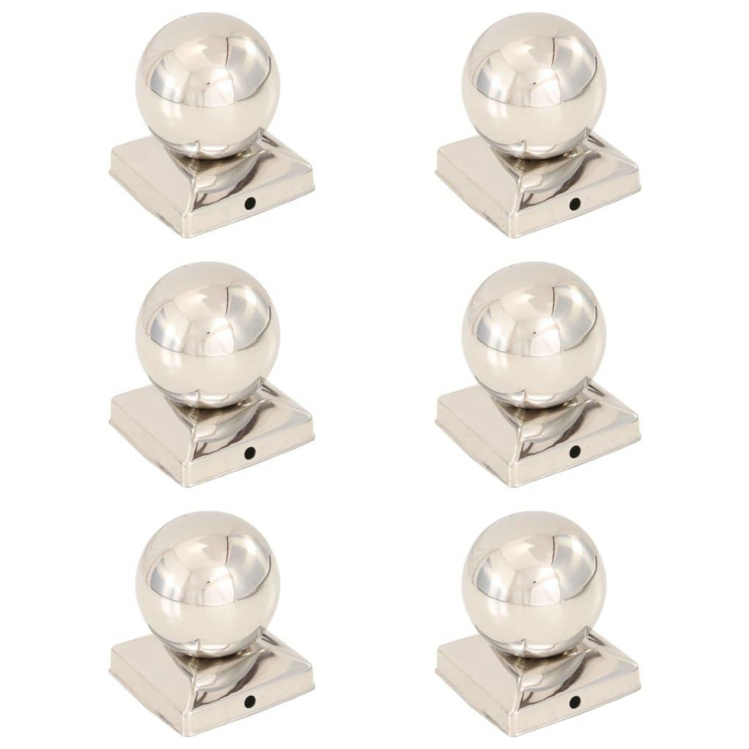 Bouchons de poteau 6 pcs Globe final Acier inoxydable 91x91 mm