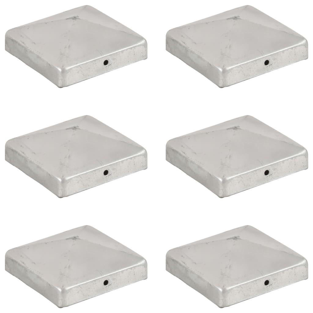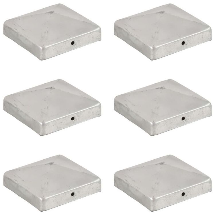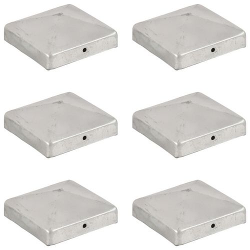 Bouchons de poteau de cloture 6 pcs Metal galvanise 91x91 mm