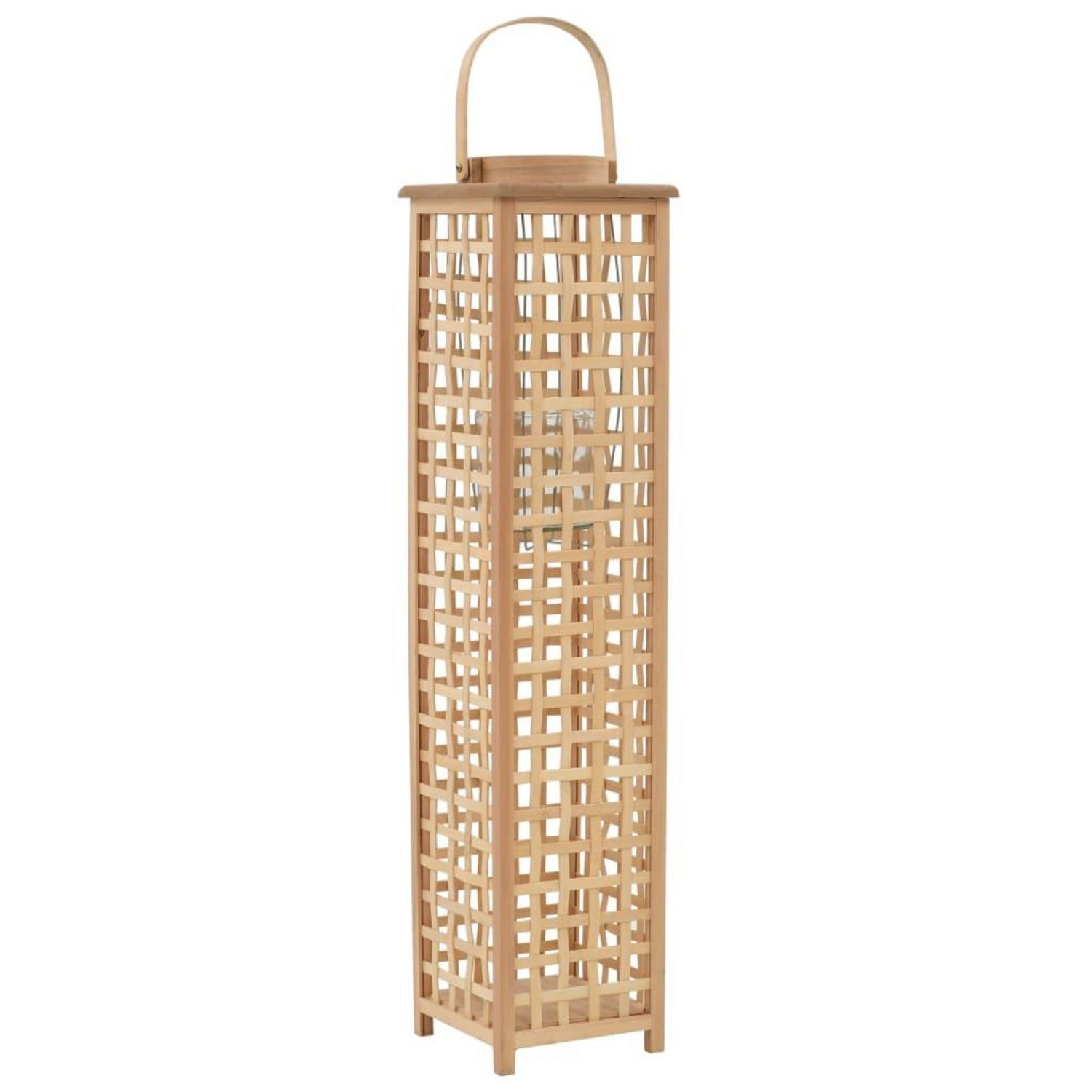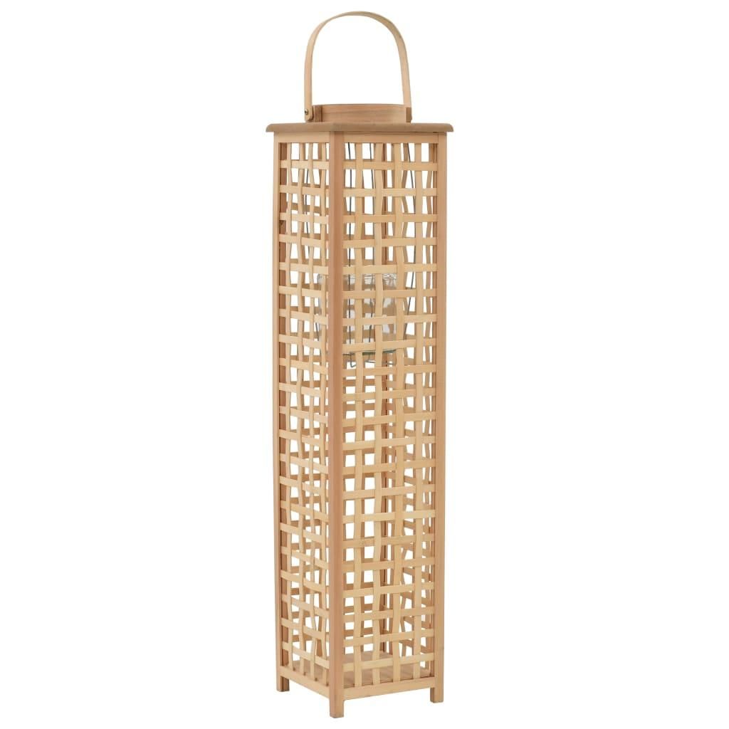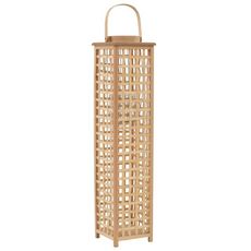 Fait de bambou naturellement resistant, ce porte-bougie suspendu convient a une utilisation en plein air. Le pot de verre interieur fournit un abri sur et stable pour la bougie. Il est facile de le raccrocher avec la poignee en bambou incluse mais aussi autoportante si necessaire.