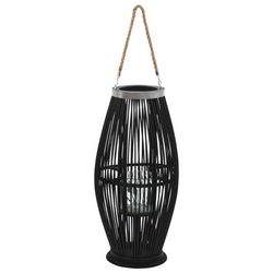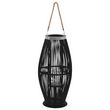 Fait de bambou naturellement resistant, ce porte-bougie suspendu convient a une utilisation en plein air. Le pot de verre interieur fournit un abri sur et stable pour la bougie. Il est facile de le raccrocher avec la poignee en corde incluse mais aussi autoportante si necessaire.