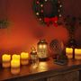 Créez une ambiance chaleureuse et relaxante avec ces bougies à LED sans flamme. Ce sont d'excellentes décorations pour les anniversaires, les mariages, les hôtels, les bars, les maisons, Noël, etc. Les bougies électriques présentent de vrais bords ondulés en cire et vous donnent un look réaliste mais absolument pas de désordre, pas de cire dégoulinante, pas de fumée et pas d'allumettes. La technologie de flamme vacillante fait scintiller ces bougies à LED en cire véritable et bouger comme de vraies flammes. Grâce à la télécommande, vous pouvez allumer et éteindre les bougies à distance et régler la minuterie sur vos bougies sans flamme. Pour un fonctionnement facile et pratique, vous pouvez choisir entre une minuterie de 2/4/6/8 heures et des options d'éclairage clignotant statique et des niveaux de luminosité. Ces bougies électriques peuvent offrir un éclairage continu de 50 heures avec 1 tour de piles. De plus, ces bougies sont sans danger pour les familles avec des animaux de compagnie ou de jeunes enfants. Couleur de la bougie : grisCouleur de la lumière : blanc chaudMatériau : vraie cire (à l'extérieur), plastique (à l'intérieur)Dimensions : 7,5 x 10 cm (Diamètre x H)Pile requise : 3 piles AAA (non incluses)50 heures d'utilisation sur 1 tour de pilesTélécommande avec fonction de minuterie et différents modesConvient pour l'intérieur en hiver et l'extérieur en étéAssemblage requis : nonLa livraison contient :24 x bougie à LED1 x télécommande Ce produit ne doit pas être éliminé avec les autres déchets ménagers dans l'Union européenne.Couleur de la bougie : grisCouleur de la lumière : blanc chaudMatériau : vraie cire (à l'extérieur), plastique (à l'intérieur)Dimensions : 7,5 x 10 cm (Diamètre x H)Pile requise : 3 piles AAA (non incluses)50 heures d'utilisation sur 1 tour de pilesTélécommande avec fonction de minuterie et différents modesConvient pour l'intérieur en hiver et l'extérieur en étéAssemblage requis : nonLa livraison contient :24 x bougie à LED1 x télécommande
