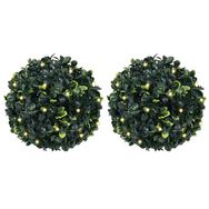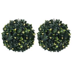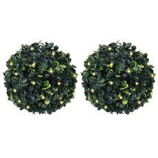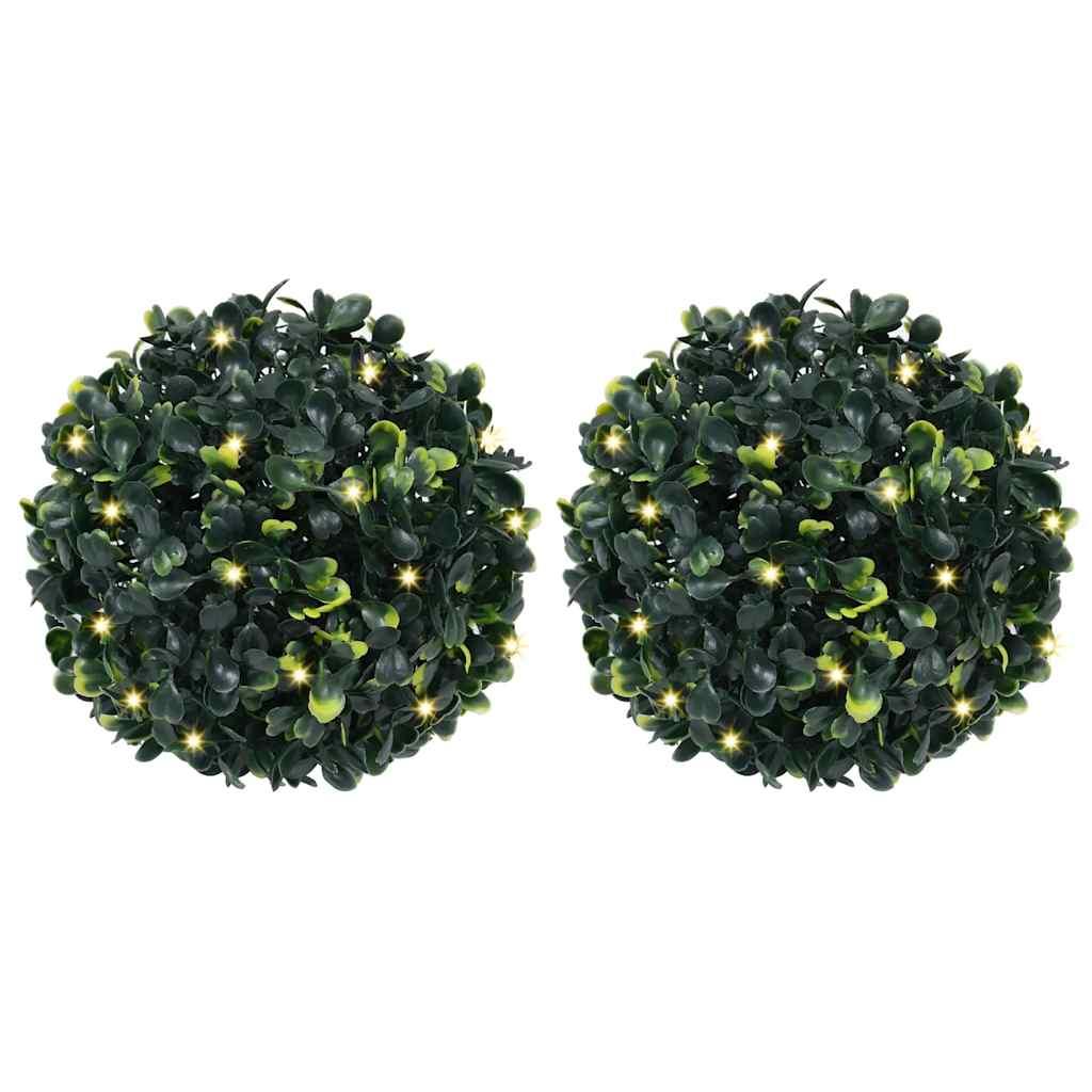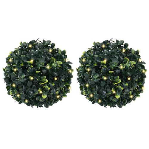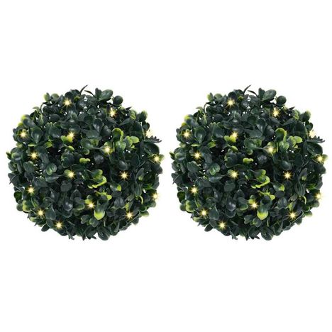 Boules de buis artificielles avec lumieres LED 2 pcs vert 22 cm
