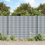 Ces brise-vues de jardin, fabriques en PVC resistant aux intemperies, sont utilises comme barriere d'intimite decorative pour une cloture metallique.