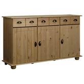 L'armoire de rangement est en bois de pin massif, ce qui la rend stable et durable. La poignee incluse facilite l'ouverture de la porte et du tiroir. Cette armoire dispose de trois tiroirs et trois portes, offrant amplement d'espace de rangement pour vos articles. De plus, le dessus robuste est ideal pour exposer des objets decoratifs tels que des cadres photo, des plantes en pot, des vases, etc.