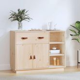 Ce buffet en bois est destine a satisfaire vos differentes exigences et est un excellent supplement a votre piece. Bois de pin massif : le bois de pin massif est un materiau naturel magnifique. Le bois de pin a un grain droit et les nœuds donnent au materiau son aspect caracteristique et rustique.Ca