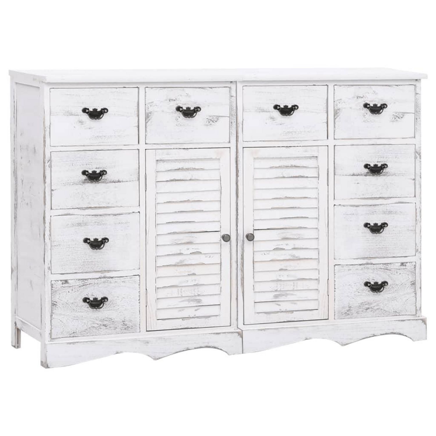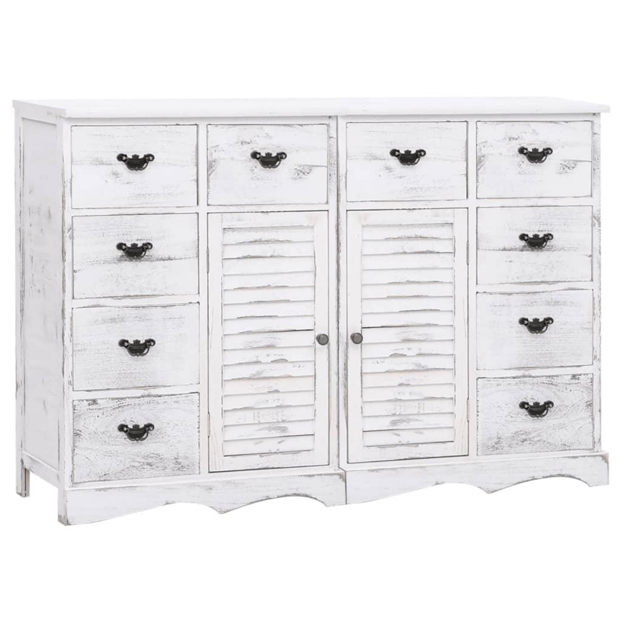 Avec son look antique et son utilite pratique, cet ensemble de buffet en bois deviendra le complement ideal dans votre maison existante. Fabrique en bois de paulownia et de peuplier de qualite, ce buffet est extremement robuste et durable. Il se compose de 10 tiroirs et de 2 placards offrant un gran