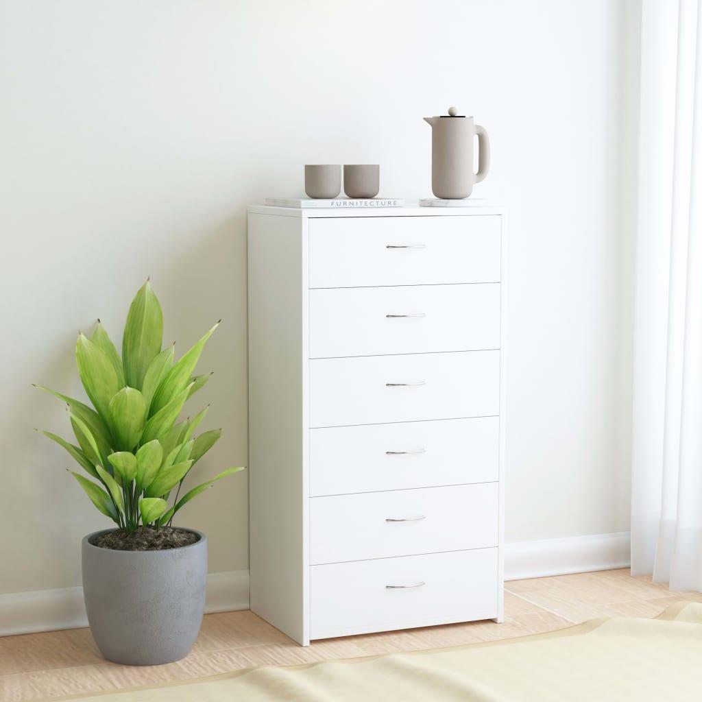 Buffet avec 6 tiroirs Blanc 50x34x96 cm Bois d'ingenierie