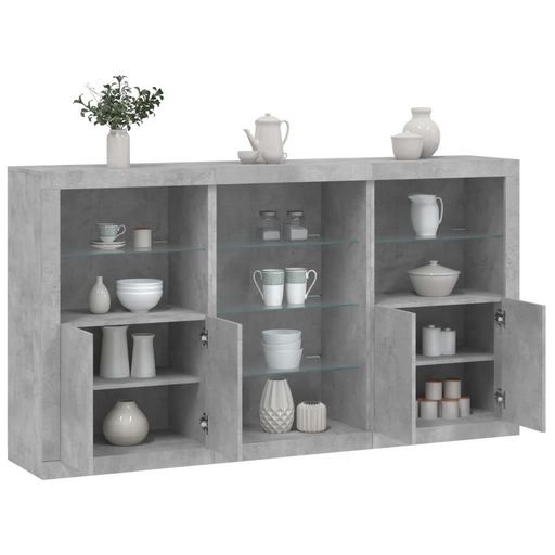 Buffet avec lumieres LED gris beton 181,5x37x100 cm