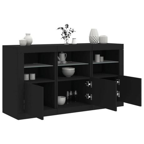 Le buffet avec lumières LED noir de VIDAXL, référence 3209059, est conçu pour apporter une touche de modernité et d'élégance à votre espace de vie. Avec ses dimensions de 123 x 37 x 67 cm, il s'intègre parfaitement dans une pièce contemporaine tout en offrant un espace de stockage généreux. Le design noir et l'incorporation de lumières LED créent une ambiance chaleureuse et accueillante, idéale pour un salon ou une salle à manger.