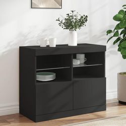 Buffet avec lumières LED noir 81x37x67 cm