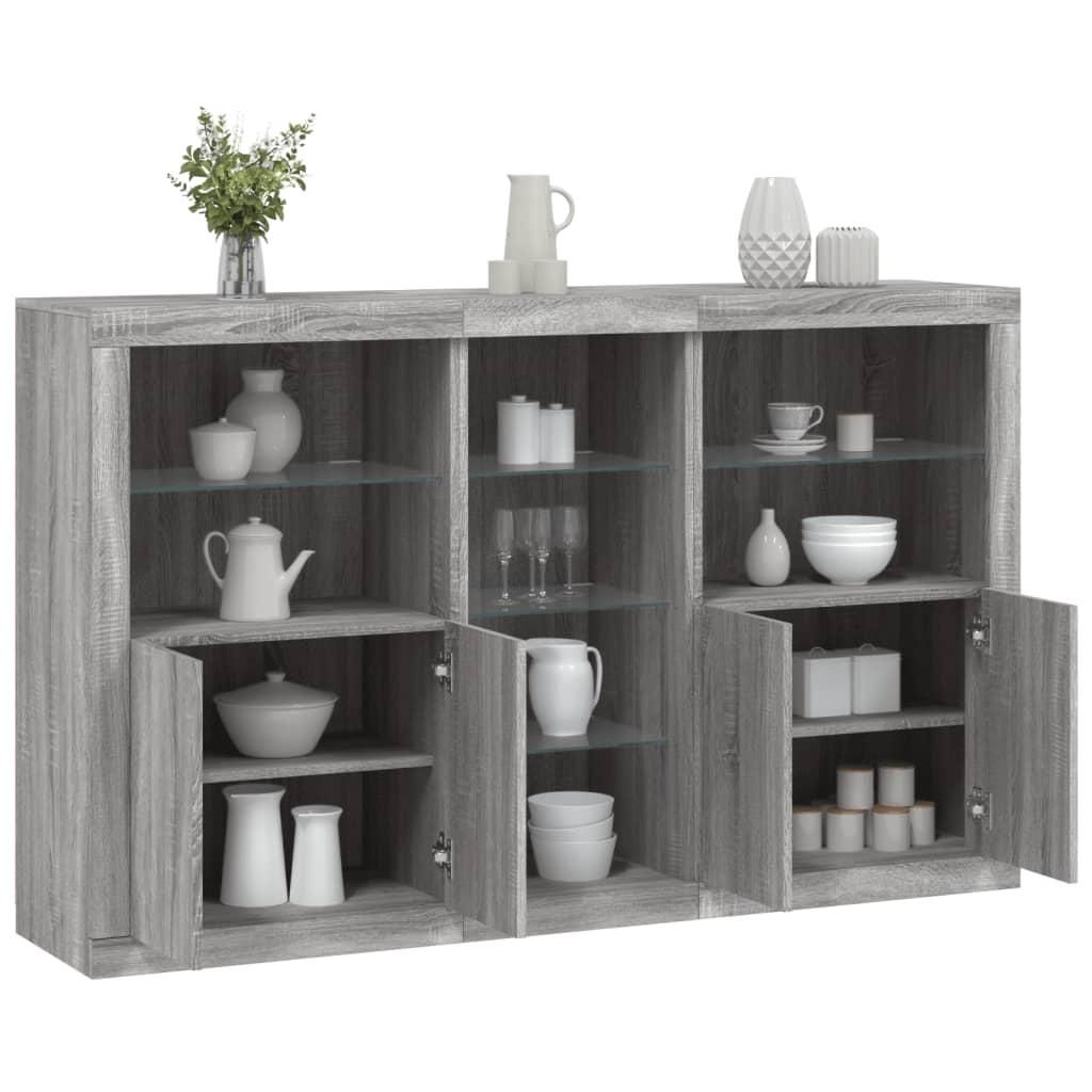 Buffet avec lumieres LED sonoma gris 162x37x100 cm