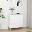 Buffet avec pieds en bois blanc brillant bois d'ingenierie