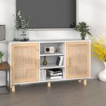Buffet Blanc 105x30x60 cm Bois de pin massif et rotin naturel