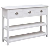 Le buffet est fait de bois de peuplier et de bois de paulownia de premiere qualite et est tres stable et durable. Son dessus robuste est ideal pour placer des objets decoratifs tels que des vases ou des plantes en pot. Les 3 tiroirs et les 2 etageres offrent suffisamment d'espace de rangement pour garder vos differents articles bien organises. Il peut egalement etre utilise comme table console pratique.