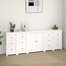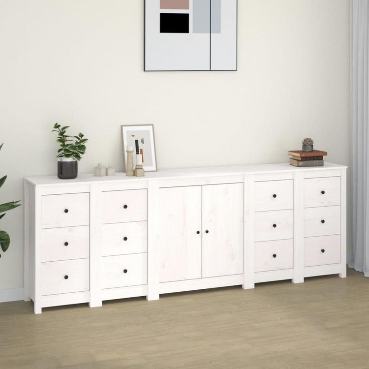 Rangez vos objets precieux de maniere elegante. Ce buffet est ideal pour tout salon, chambre a coucher ou bureau moderne pour garder les objets necessaires a portee de main. Bois de pin massif : le bois de pin massif est un materiau naturel magnifique. Le bois de pin a un grain droit et les nœuds do