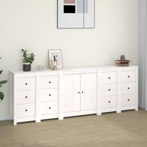 Buffet Blanc 230x35x80 cm Bois massif de pin