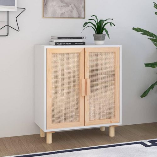 Buffet Blanc 60x30x70 cm Bois de pin massif et rotin naturel
