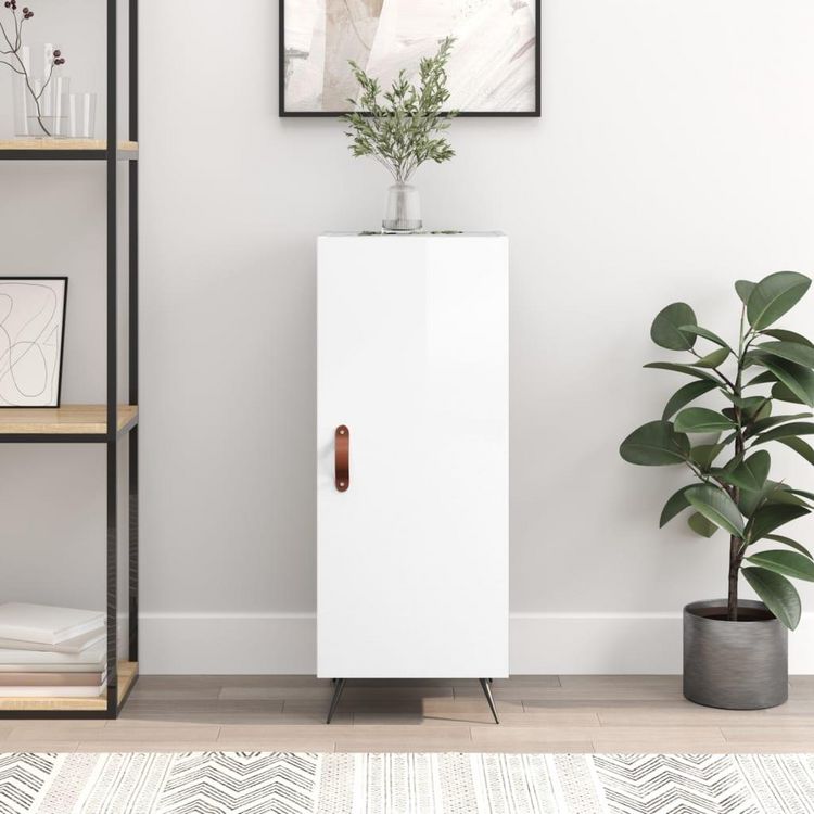 Buffet Blanc brillant 34,5x34x90 cm Bois d'ingenierie