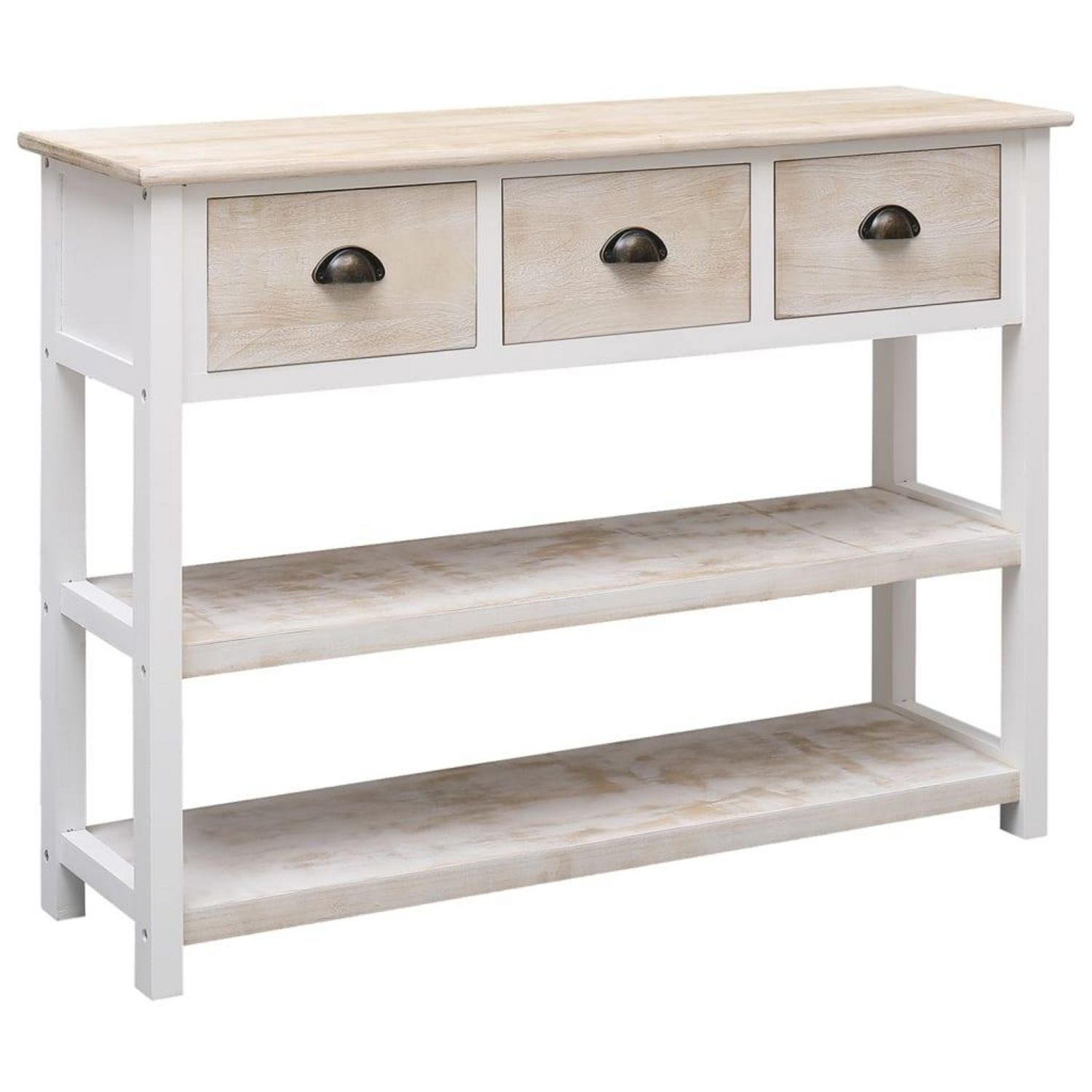 Buffet Blanc et marron 108x30x76 cm Bois de Paulownia massif