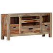 Le meuble est fait de bois massif , un bois dur tropical qui est celebre pour ses grains naturels et sa texture lisse, egalement connu sous le nom de bois de rose ou palissandre. De plus, il ne se deforme pas, ne se fend pas et resiste a la pourriture naturelle. En consequence, ce superbe meuble TV est extremement stable, durable et accrocheur. La fabrication exquise garantit que chaque etape du processus est realisee avec le plus grand soin, que ce soit le polissage ou le laquage. Notre armoire en bois est entierement fabriquee a la main et les grains de bois esthetiques rendent chaque piece unique et legerement differente l'une de l'autre. De plus, ce buffet dispose de 3 tiroirs et de 4 compartiments ouverts, offrant suffisamment d'espace pour ranger votre appareil multimedia, livres et autres articles divers.