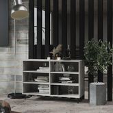 Cette armoire a livres a des pieds en metal et une construction robuste, ce qui la rend extremement durable et robuste. Avec 6 etageres, l'armoire laterale offre suffisamment d'espace de rangement pour les livres, les appareils multimedia et d'autres articles. Le dessus de table robuste est egalement ideal pour exposer des objets decoratifs, des cadres photo ou des plantes en pot. De plus, l'armoire de rangement est facile a nettoyer avec un chiffon humide.