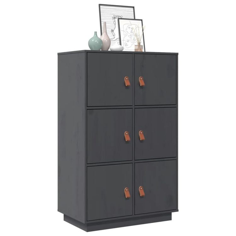 Buffet haut Gris 67x40x108,5 cm Bois massif de pin