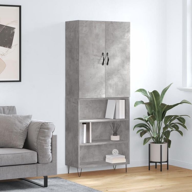 Buffet haut Gris beton 69,5x34x180 cm Bois d'ingenierie