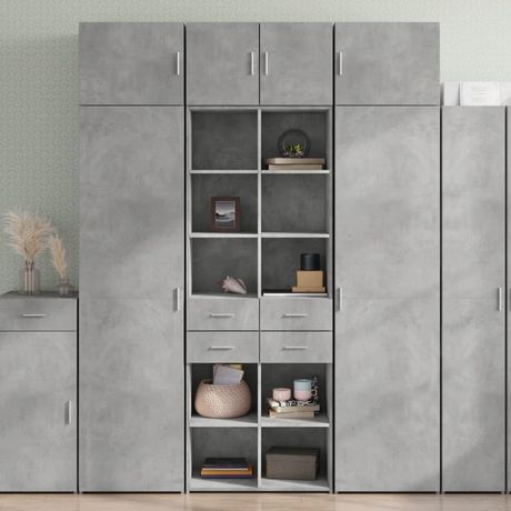 Buffet haut gris beton 70x42,5x185 cm bois d'ingenierie