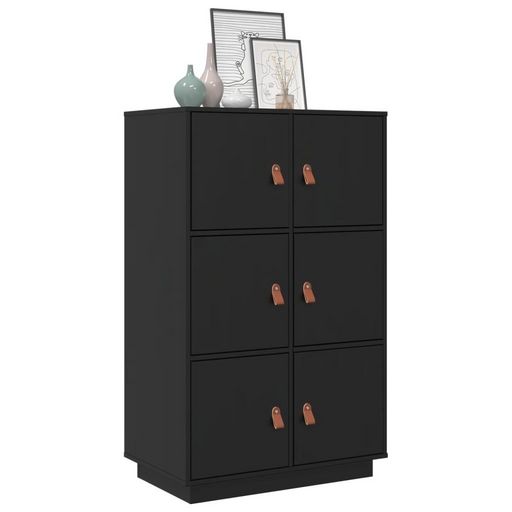 Buffet haut Noir 67x40x108,5 cm Bois massif de pin