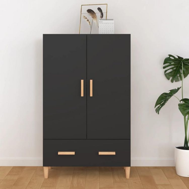 Buffet haut noir 70x31x115 cm bois d'ingenierie