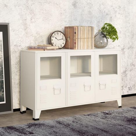 Buffet industriel Blanc 105x35x62 cm Metal et verre