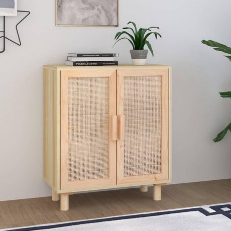 Buffet Marron 60x30x70 cm Bois de pin massif et rotin naturel