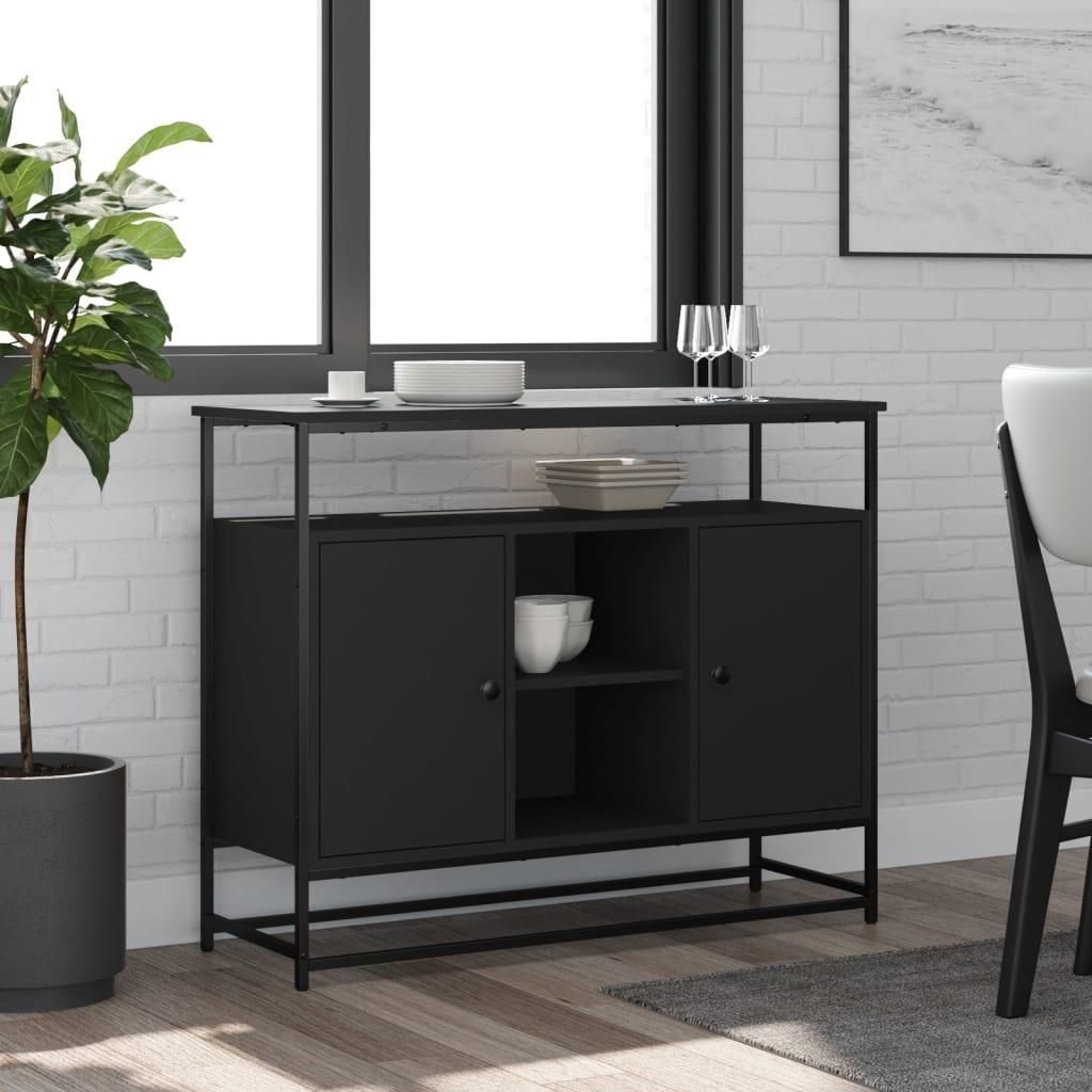 Buffet noir 100x35x80 cm bois d'ingenierie
