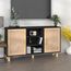 Buffet Noir 105x30x60 cm Bois de pin massif et rotin naturel