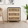Buffet Noir 60x30x70 cm Bois de pin massif et rotin naturel