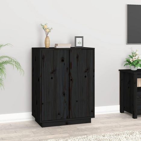 Buffet Noir 60x35x80 cm Bois massif de pin