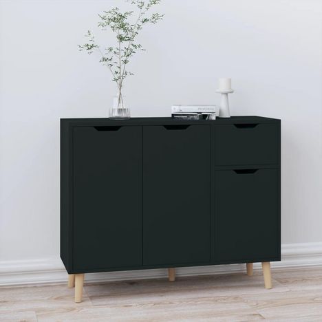 Buffet noir 90x30x72 cm bois d'ingenierie