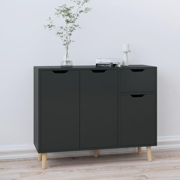 Buffet noir brillant 90x30x72 cm bois d'ingenierie