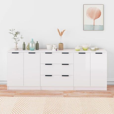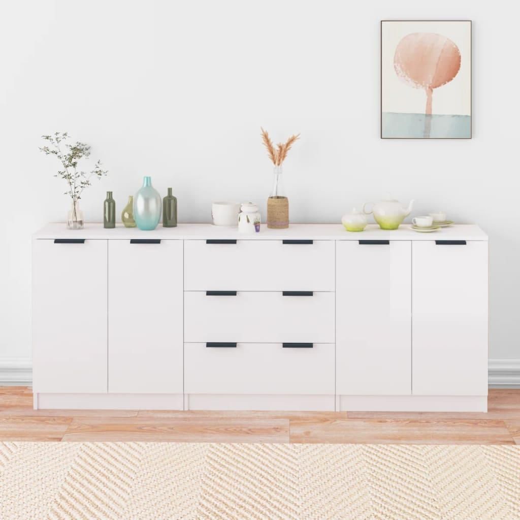Buffets 3 pcs blanc brillant bois d'ingenierie